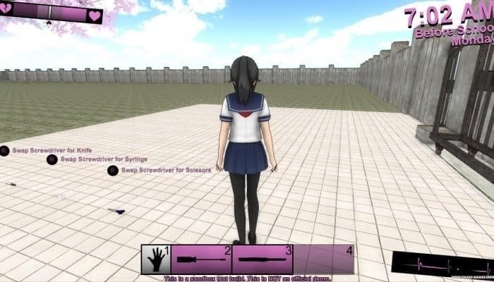 У вас есть пару дней, чтобы придумать план устранения, следя за девочками, определяя их слабые места. Вариантов много — затравить социальным саботажем или шантажировать, решить всё мирно и полюбовно или пойти на крайние меры — убийство. Если вы сделаете это, у персонажа упадёт уровень вменяемости, влияющий на прохождение. Пополнить шкалу можно посмеявшись (эмоциональная разрядка — механика игры) или подойдя к Ямаду, только не попадайтесь ему на глаза.